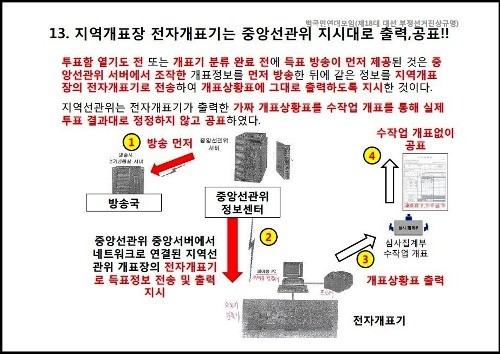 18´ë ´ë¼±¿¡¼ Á¤»óÀûÀÎ °³Ç¥¹æ¼ÛÀº Áß¾Ó¼±°üÀ§ Àü»ê¼¾ÅÍ¿¡¼ Àü±¹ 13,542 ÅõÇ¥±¸ÀÇ °³Ç¥»óȲǥ¸¦ 252 Áö¿ª ¼±°üÀ§¿øÀåÀÌ °øÇ¥ÇÑ ´ÙÀ½ Áß¾Ó¼±°üÀ§¿¡ Àü¼ÛÀ» ÇÏ°í ½Ã¡¤µµ¼±°üÀ§´Â º°µµÀÇ ÆÑ½º Àü¼ÛÀ» Çϰí, ÀÌ °³Ç¥»óȲǥµéÀ» Áß¾Ó¼±°üÀ§¿¡¼ ´Ü¼øÇÏ°Ô ¹æ¼Û»ç¿¡ Àü¼Û¸¸ ÇÏ¸é µÈ´Ù.
