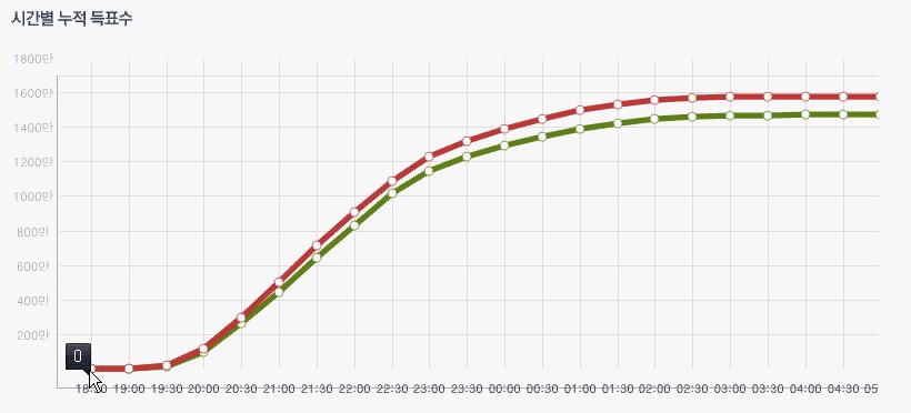 ¼Â°, 18´ë ´ë¼± °³Ç¥´Â 22½Ã 30ºÐºÎÅÍ ¸¶°¨ ½Ã°£±îÁö 0.93%¸¦ °è¼Ó À¯ÁöÇß´Ù. ±×°Íµµ °³Ç¥ 60% ÀÌÈÄ º¯µ¿ÀÌ ¾ø¾ú´Ù.
