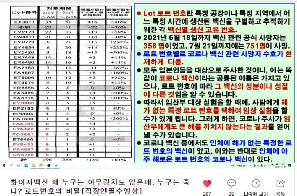 ÈÀÌÀÚ, ¸ð´õ³ª ¹é½Å ·ÎÆ®(Lot) ¹øÈ£º° ÁÖ¿ä ºÎÀÛ¿ë°ú °ü·Ã Åë°è ¼öÄ¡.