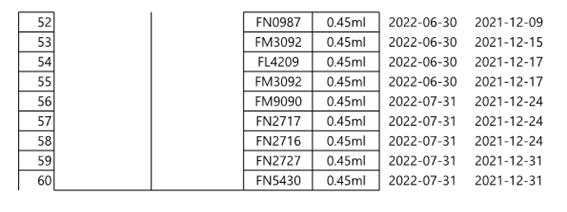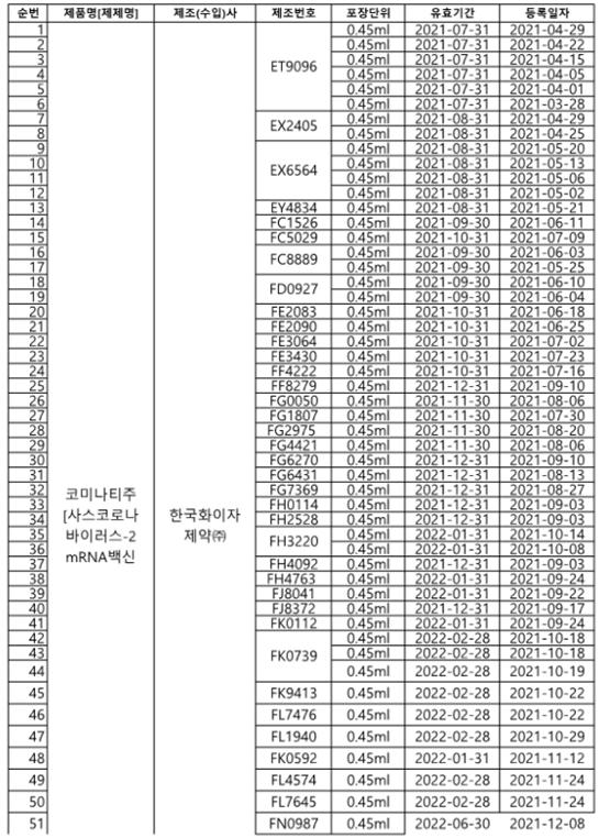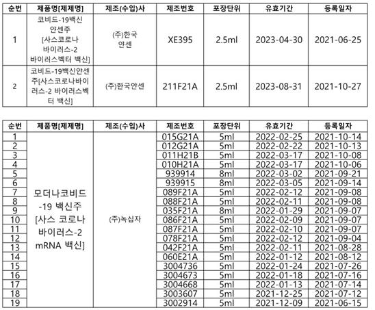 Á¤ºÎ´Â ÈÀÌÀÚ ¹é½Å ET9096(21. 3.28)À» ½ÃÀÛÀ¸·Î ÇØ¼ FN5430(21.12.31)±îÁö 60°³ Á¾·ù(Á¦Á¶¹øÈ£)¸¦ ¼öÀÔÇÏ¿© 2022³â 7. 31ÀϱîÁö ±¹¹Î¿¡°Ô Á¢Á¾ ¹× ¿¹Á¤ÀÌ´Ù.