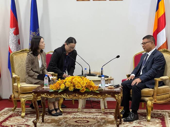 ¡ã įº¸µð¾Æ¸¦ ¹æ¹® ÁßÀÎ ±èÁø¾Æ ¿Ü±³ºÎ Á¦2Â÷°ü °â įº¸µð¾Æ Ãë¾÷»ç±â¡¤°¨±Ý Á¤ºÎÇÕµ¿´ëÀÀÆÀ ´ÜÀåÀÌ ÇöÁö½Ã°£ 10.16.(¸ñ) ¿ÀÀü ÇÁ³ðÆæ¿¡¼ ÈÆ ¸¶³Ý(Hun Manet) ÃѸ® ¹× Â÷ÀÌ ½Ã³ª¸®½º(Chhay Sinarith) ¿Â¶óÀνºÄ·´ëÀÀÀ§¿øÈ¸(CCOS) »ç¹«ÃÑÀåÀ» °¢°¢ ¸é´ãÇß´Ù. ©»çÁø ¿Ü±³ºÎ