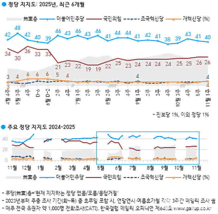 Á¤´çÁöÁöµµ, ¹ÎÁÖ´ç 40% vs ±¹¹ÎÀÇÈû 26%, ¼¿ï¼± ¿©´ç 47% ¾ß´ç 18%...