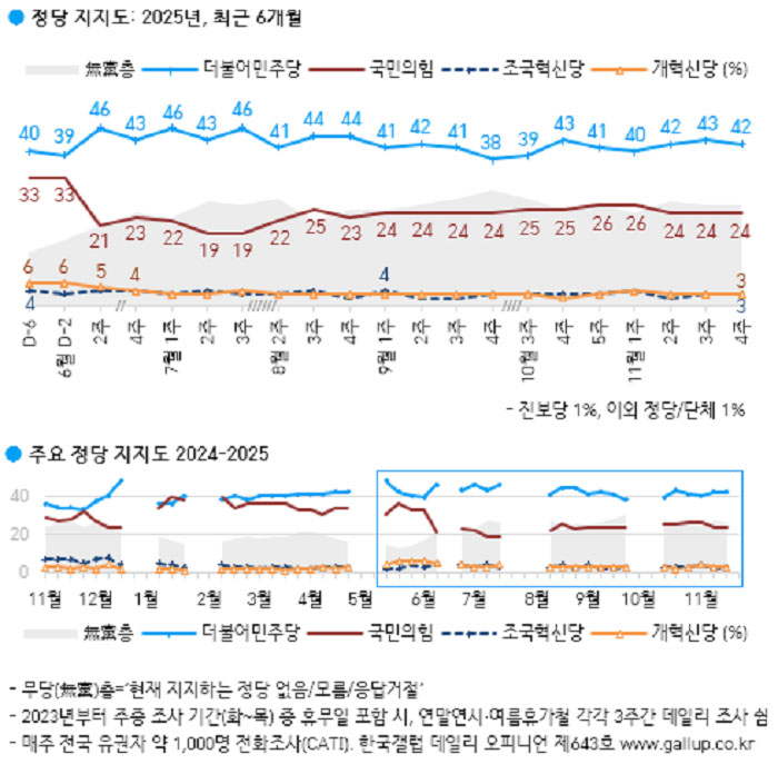 ÁßµµÃþ¿¡¼´Â ¹ÎÁÖ´ç 45%, ±¹¹ÎÀÇÈû 15%, **¹«´ç 31%**·Î Áßµµ¿¡¼ ¹ÎÁÖ´ç ¿ì¼¼ ±¸µµ°¡ À¯ÁöµÆ´Ù. °¶·´Àº ¡°8¿ù Áß¼ø ÀÌÈÄ ¿©´ç 40% ³»¿Ü vs. ±¹¹ÎÀÇÈû 20%´ë Áß¹Ý ±¸µµ°¡ Áö¼ÓÀûÀ¸·Î ¹Ýº¹µÇ°í ÀÖ´Ù¡±°í Æò°¡Çß´Ù.