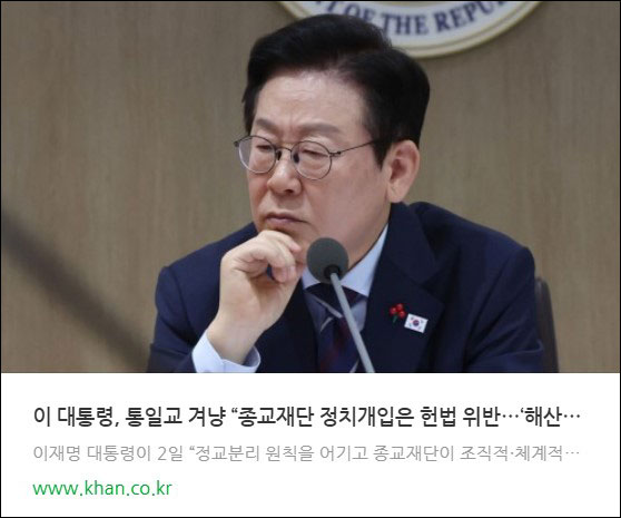 2ÀÏ ´ëÅë·ÉÀÌ ÅëÀϱ³È¸ ÇØ»êÀ» Àû±Ø °ËÅäÇ϶ó°í ¹ý¹«ºÎ Àå°ü¿¡ Áö½ÃÇß½À´Ï´Ù. ½ÃÀÇÀûÀýÇÑ ³»¿ëÀÇ ±ÛÀÔ´Ï´Ù. - ¿ªÀÚ ÁÖ