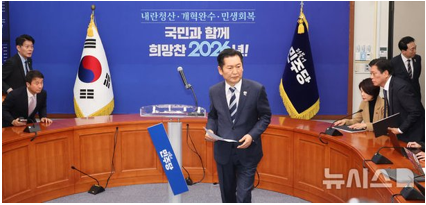 Á¤Ã»·¡°¡ Á¶±¹Çõ½Å´ç¿¡°Ô ÇÕ´çÀ» Á¦¾ÈÇÏ°í ³ª°¡¸é¼ ¹ÎÁÖ´ç °£ÆÇÀ» °Çµå¸®´Â ¹Ù¶÷¿¡